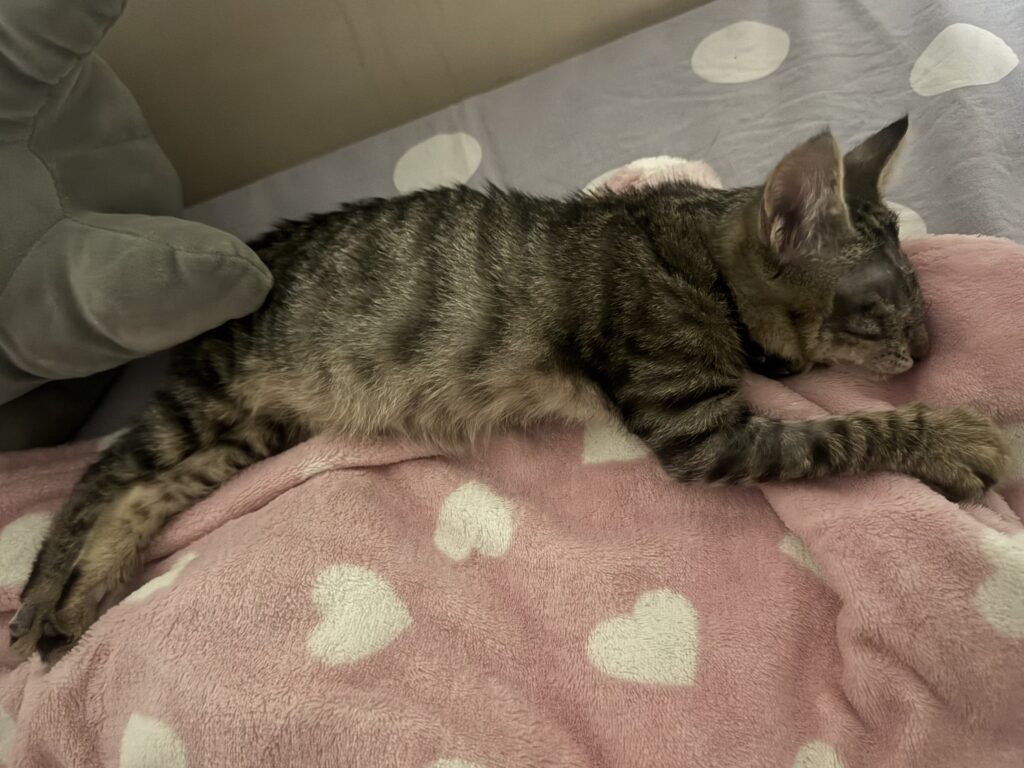 One day, my mom and I were driving on a main road when we noticed something on the side of the street. As we got closer, we realized it was a tiny kitten lying completely still. She was barely breathing and looked unconscious. When my mom picked her up, she had no reaction at all. In that moment, we truly thought she might already be gone.